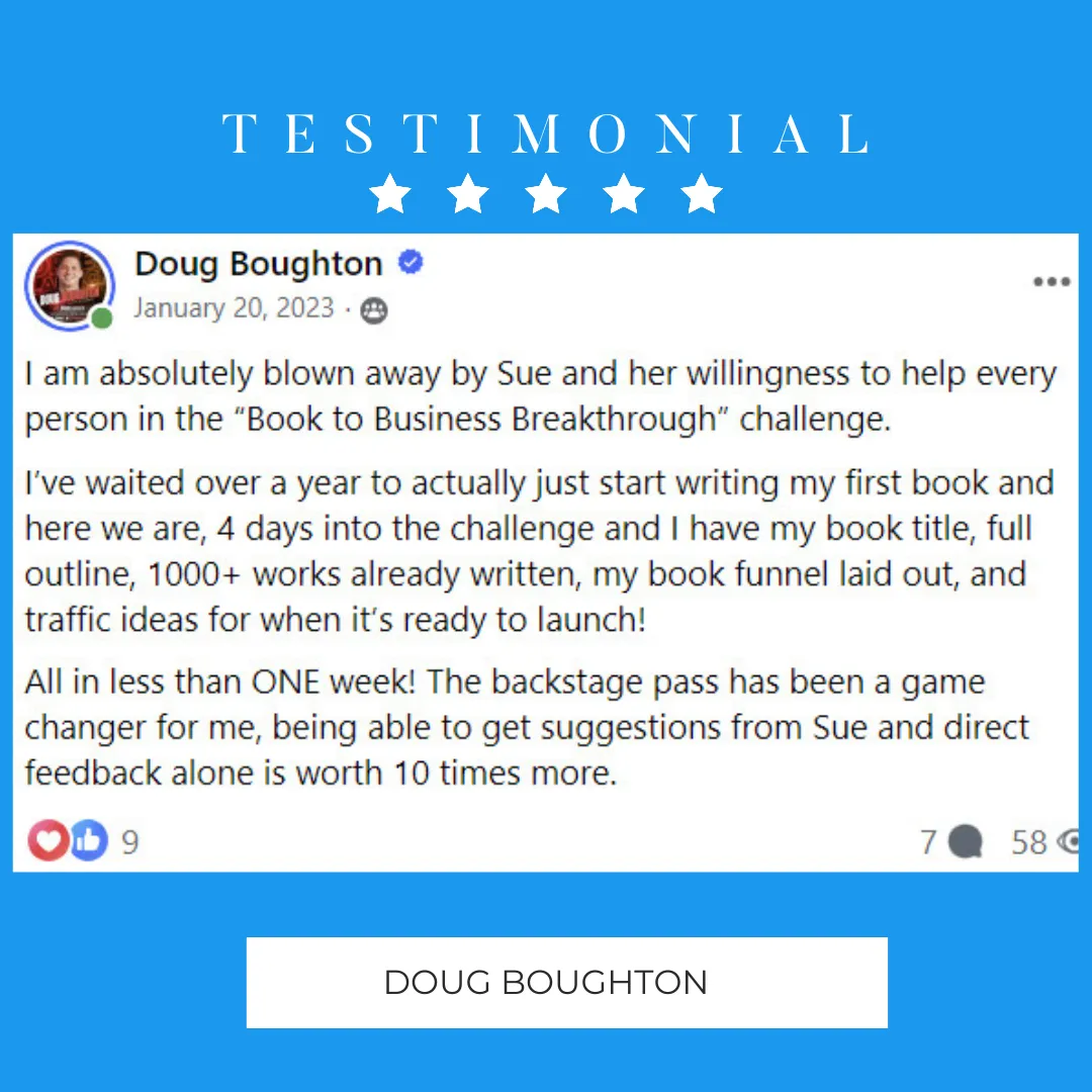 Hi! My name is Sue Sundstrom & over the last 5 years I have run live writing events for thousands of aspiring authors.
